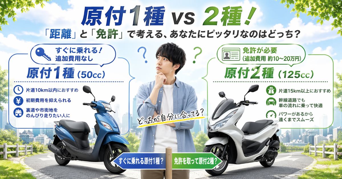バイク通勤を始めようと考えている方にとって、最初に迷うのが「50cc(原付1種)にするか、125cc(原付2種)にするか」という問題ではないでしょうか。